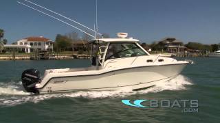 The boat's cabin features yacht-quality interior styling, including a skylight over the galley, and an expanded mid-berth with improved headroom and flexibility for bringing on extra family members and friends. Master the offshore with the power and fishability of the 315 Conquest.